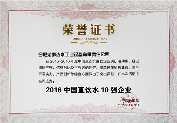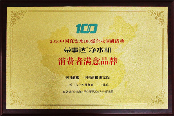 評審委員會由主辦方領(lǐng)導(dǎo)、凈水行業(yè)專家、戰(zhàn)略媒體、行業(yè)媒體、第三方調(diào)研機構(gòu)及消費者代表組成,用國際通行方式,歷時三個多月,依據(jù)中國商報研究院發(fā)布的權(quán)威、公正,有影響力的凈水企業(yè)調(diào)研報告,綜合考慮消費者對于品牌的認知度、忠誠度及美譽度,評選出包括美的、3M等在內(nèi)的百強企業(yè),榮事達名列前茅,榮獲“中國直飲水10強企業(yè)”、“消費者信賴企業(yè)”、“中國凈水行業(yè)十佳服務(wù)商”、“消費者滿意品牌”多項大獎。