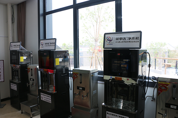 榮事達水工業公司憑借先進設計理念、專業工程運作、優質凈水設備成為唐山世園會指定直飲水供應商,為世園會量身定制了完善的直飲水工程設計方案,由專業技術團隊快速、高效完成施工。遍布園內服務區的多媒體直飲一體機,采用RO反滲透技術、五級精準過濾系統以及UV紫外線殺菌技術,能有效去除雜質、有害物,確保水質純凈,安全可直飲。設備機身采用黑鈦防腐防指紋不銹鋼制造,整機外觀大氣奢華,視覺沖擊力極強;機身搭載的LED智能顯示屏,可24小時不間斷播放畫質清晰的視頻及動畫;采用全新按鈕式出水設計,即按即開,不間斷出水,更有常溫直飲水和純開水雙重選擇,賓客飲用更安全、健康。