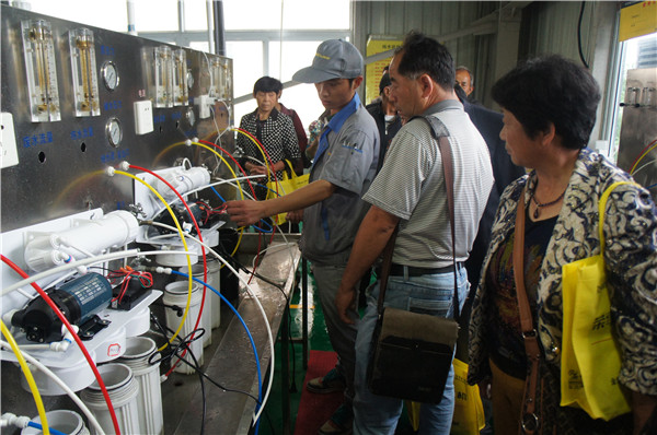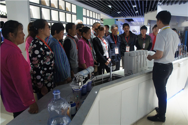 在產品展廳,接待人員給消費者解說了榮事達全線產品類別,并講解了純水機、超濾機、飲水機、一體機等產品的不同功能及適用地區(qū)。參觀中,許多鄉(xiāng)鎮(zhèn)地區(qū)消費者反映家里井水水垢水堿太嚴重、雜質多,詢問有沒有適合其使用的凈水機,接待人員向其推薦了榮事達純水機,詳細講解了純水機運用RO反滲透技術、五級過濾系統(tǒng),能夠高效去除水垢、水堿、農藥、化肥、細菌、重金屬等有害物質的過濾效果。