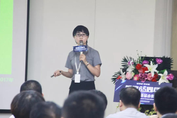 發布會上,榮事達水工業公司營銷副總張文靜作2018夏季智能新品合作發布會的項目推介,系統地介紹了榮事達的項目新政策,從門店經營、開業宣傳、活動策劃、人員培訓等全程1對1指導;派遣專業團隊在各地市場開展技術指導及安裝維護培訓等,根據代理商自身情況量身定制營銷策略;以及加盟即送服務車等等。