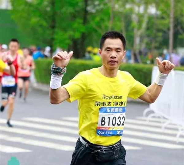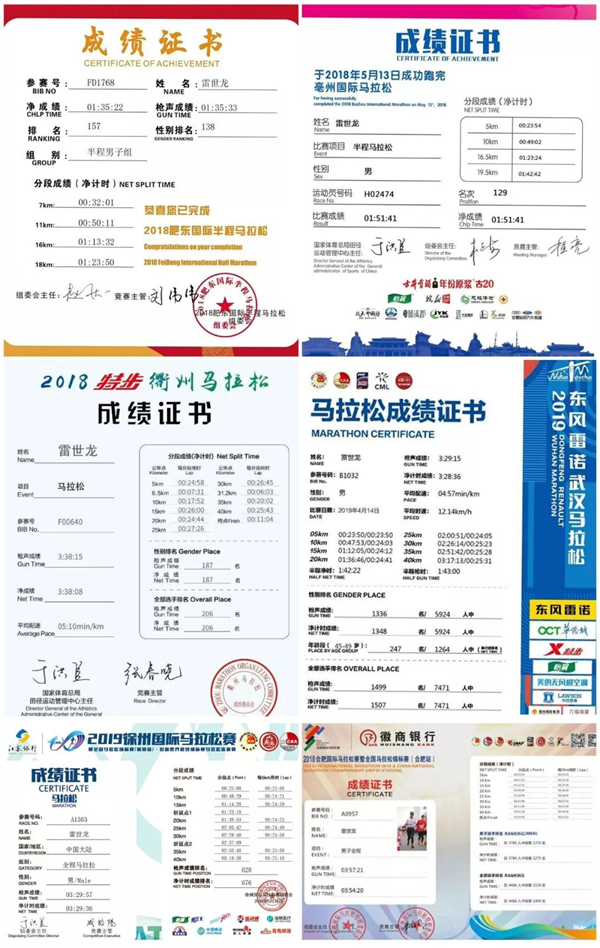 2017年,雷世龍開始接觸馬拉松運動,并加入合肥本地跑團,開始了自己的跑馬生涯。從2017年至今,雷世龍參加了大大小小二十多場馬拉松比賽,足跡遍布全國各地,其中包括多哈世界賽選拔賽徐州馬拉松比賽、中國四大滿貫賽事武漢馬拉松比賽等重要賽事,雷世龍憑借穩(wěn)定的實力和出色的發(fā)揮順利跑完全程并取得了優(yōu)異的名次。值得一提的是,雖然雷世龍正式接觸馬拉松只有兩年多,但他已成功全馬進入330(即3小時30分鐘內(nèi)跑完馬拉松全程),獲得精英選手成績,并因此得到國內(nèi)重要賽事直通名額?!斑^了今年我就五十歲了,但是我會一直跑下去,我的夢想是完成中國馬拉松大滿貫,我也正為此努力準備著?!?BR> 工作的繁忙阻擋不了雷世龍參加馬拉松的決心,為了順利完成今年六月份的蘭州雙金跑馬賽事,雷世龍現(xiàn)在每天都要堅持完成三十公里的跑步計劃,當談及跑馬對工作的影響時,雷世龍笑著說:“跑步賦予我們的不僅僅是強健的體魄,更多的是對精神的磨煉,唯有努力奔跑,才能讓人永葆激情和活力,才能更好地面對工作中的挑戰(zhàn)和困難。公司對我參加馬拉松是非常支持的,從帶薪休假到物資支持,為我提供了很多便利。同時我也希望自己能給年輕員工做一個表率,愿我們每一個榮事達人都能不忘初心,保持永遠向前奔跑的決心!”