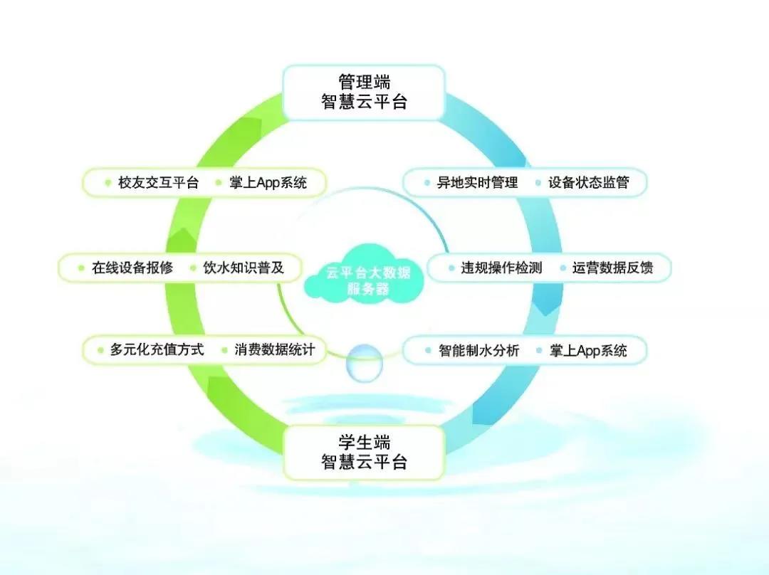 5G云+新時代的來臨,榮事達著眼校園直飲水的互聯(lián)網(wǎng)化建設(shè),創(chuàng)新打造校園直飲水智慧管理系統(tǒng)。系統(tǒng)直連凈水主機、開水器、飲水機等各個終端定制設(shè)備,實現(xiàn)精細化管理。學(xué)生在使用中不僅能查詢使用記錄、在線報修設(shè)備等,而且還能使用微信、支付寶等多種方式支付,充分享受快捷的智能飲水體驗。而校方也可通過電腦或手機APP端口接入云數(shù)據(jù)平臺,異地監(jiān)測運行狀況,實時掌握水電成本、消費收益、設(shè)備狀態(tài)等數(shù)據(jù)信息。榮事達以新技術(shù)、新平臺,讓更多學(xué)校享用到5G互聯(lián)網(wǎng)時代的便捷紅利。