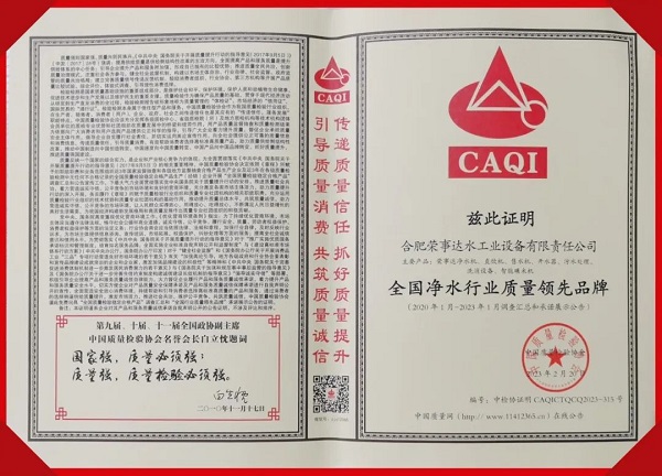 在中國質量檢驗協會主辦的2023年“3.15”產品和服務質量誠信承諾的主題活動中,榮事達憑借過硬的實力,獲得協會以及權威專家的一致認可,榮膺“全國凈水行業質量領先品牌”“全國產品和服務質量誠信示范企業”“全國質量檢驗穩定合格產品”“全國消費者質量信譽保障產品”多項榮譽。