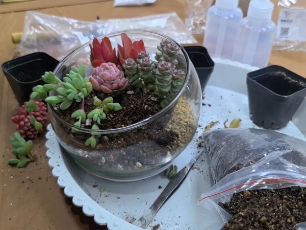 在DIY過程中,大家互相交流、分享心得,笑聲和談話聲此起彼伏。有的女神選擇了簡約風格,將多肉植物種植在小巧精致的花盆里,展現出一種清新脫俗的美;有的則選擇了色彩豐富的搭配,將不同顏色的多肉組合在一起,創造出一幅幅生動的畫面。