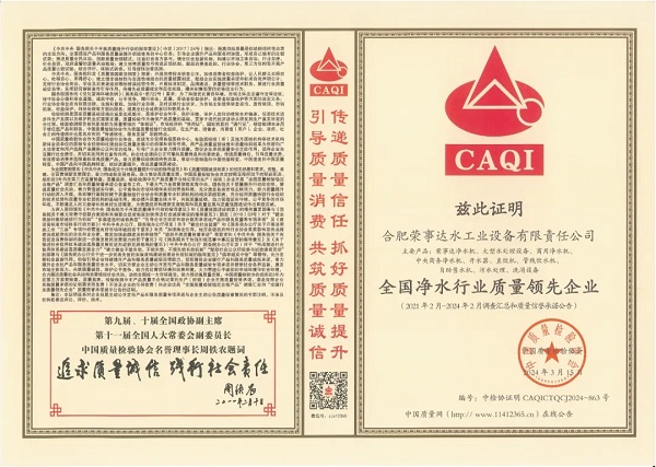 傳遞質量信任,引導質量消費。 在由中國質量檢驗協會主辦的2024年“3·15”產品和服務質量誠信承諾的主題活動中,榮事達水工業公司憑借卓越的產品品質及良好的社會形象,獲得協會以及權威專家的一致認可,榮膺 “全國產品和服務質量誠信示范企業 ”“全國凈水行業質量領先企業”“全國凈水行業質量領先品牌”“全國產品和服務質量誠信品牌”“全國質量檢驗穩定合格產品”“全國質量檢驗信譽保障產品”“全國消費者質量信譽保障產品 ”多項榮譽。