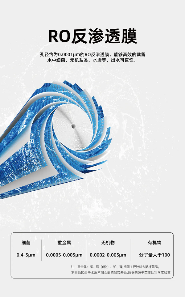 榮事達RSD-RO4E節能直飲機是中國節能認證產品,產品采用節能熱交換技術,在管式交換器內,過濾后的自來水吸收開水釋放的熱能升溫85℃左右,從而充分節省了降水燒開所需的電能和時間,有效改善了傳統飲水機的費時、費電的弱點。設備采用二開水二溫水設計,既滿足了員工泡茶的需求,也提供了即飲的溫水選項,極大地方便了員工的日常飲水。此外,設備采用先進的RO反滲透技術,有效濾除水中的泥沙、鐵銹、重金屬等雜質,出水可達直飲標準。
