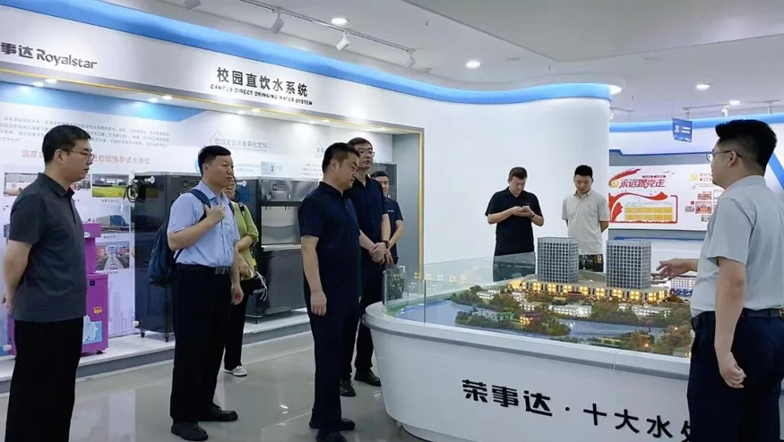 領(lǐng)導一行參觀了解集團的全屋智慧凈水項目、社區(qū)智慧飲水項目以及校園直飲水項目等。