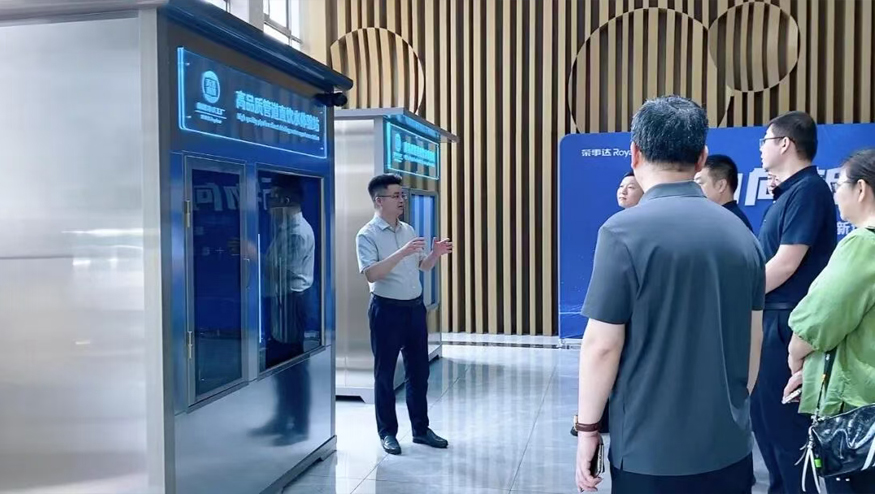 總經(jīng)理王悅生向領(lǐng)導一行介紹管道直飲水項目:該項目針對社區(qū)、學校、醫(yī)院、企事業(yè)單位及工廠等場景,提供定制化飲水模式,涵蓋社區(qū)智慧水站、校園智慧凈水屋、管道直飲水入戶/入棟解決方案,旨在為民眾打造便捷、高端、健康的飲水服務。