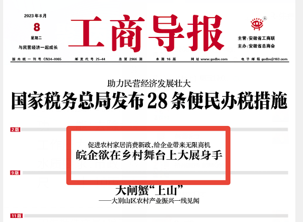 媒體聚焦|工商導(dǎo)報(bào)“皖企欲在鄉(xiāng)村舞臺(tái)上大展身手”