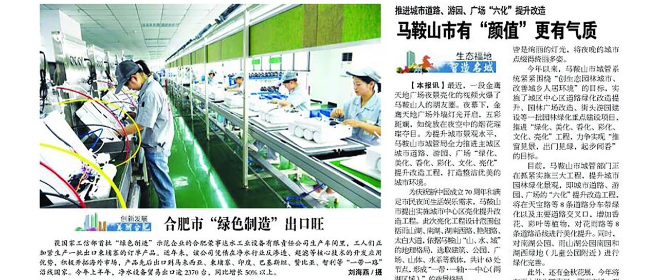 厲害了!!《歐洲時(shí)報(bào)》魅力安徽專版報(bào)道 榮事達(dá)綠色制造出口旺 一帶一路暢銷海外【報(bào)道原文】 獲國家工信部首批“綠色制造”示范企業(yè)的合肥榮事達(dá)水...