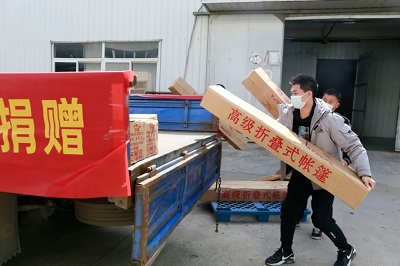 4月8日榮事達(dá)水工業(yè)集團(tuán)工作人員以最快的速度進(jìn)行物資的裝載,滿(mǎn)載著抗疫物資,發(fā)往37℃的愛(ài)活動(dòng)統(tǒng)籌處。